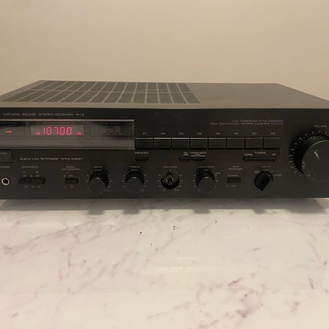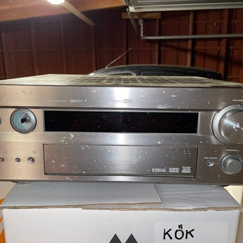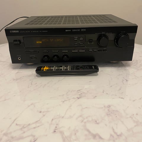 Yamaha RX-V540RDS Receiver med fjärrkontroll och användarmanual. Enheten har flera anslutningsmöjligheter inklusive högtalarterminaler och olika ljudingångar. Svart färg och standardstorlek för hemmabioanläggningar.