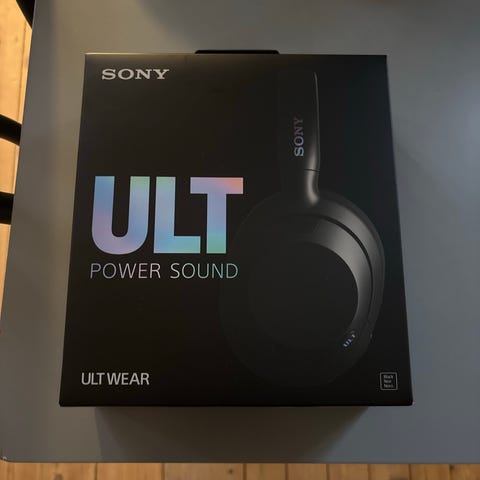Helt nya Sony over-ear hörlurar i obruten förpackning.