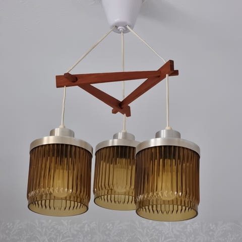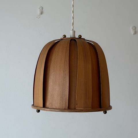 Teak taklampa designad av Uno & Östen Kristiansson för Luxus. 1960-tal, Nr P68