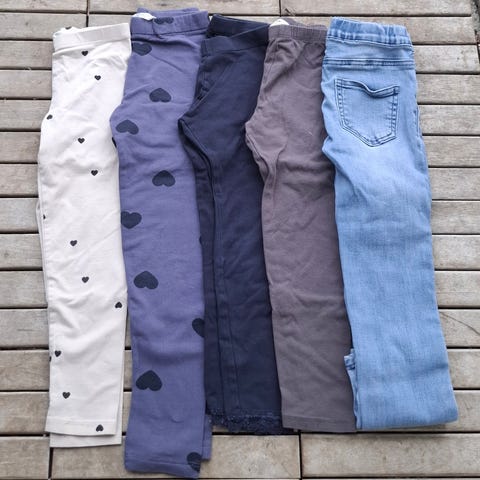 Två par byxor. Ett par mjukisbyxor och ett par jeggins.