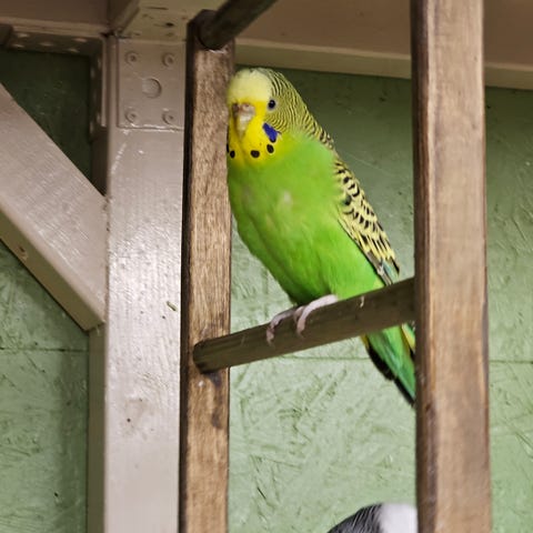 Säljer en dubbelfaktor spangel vit engelsk undulat hona.