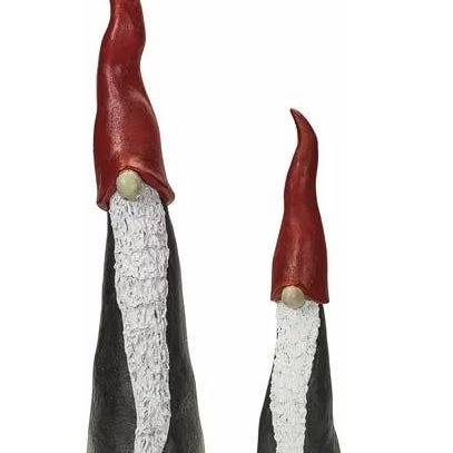 Två tomtar. 24cm & 35cm höga. Den högra 35cm tomten har en skada på foten tyvärr. Säljes tillsammans