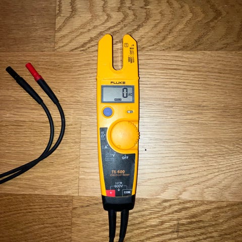 Fluke 3000 FC digital multimeter med True RMS-funktion. Mätningskapacitet upp till 400mA för AC och DC samt upp till 1000V för AC. med tillbehör inklusive testkablar och säkringar. Användbar för elektriska mätningar och felsökning.