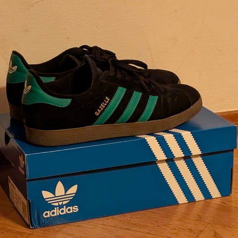Adidas Gazelle sneakers i storlek 43 1/3 gröna med svarta detaljer. Obetydligt använda ADIDAS Gazelle ”College Green Black” 43 1/3