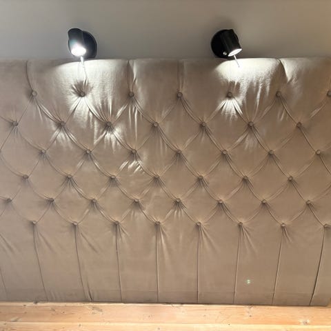 Mio Sänggavel i beige manchester tyg