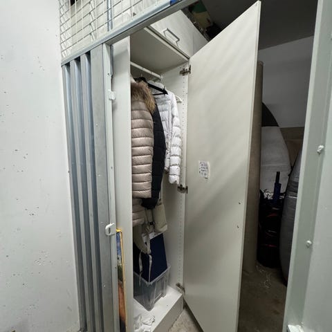Två stycken garderober i ek med frostat glas. Mycket bra förvaring, rymmer mycket.