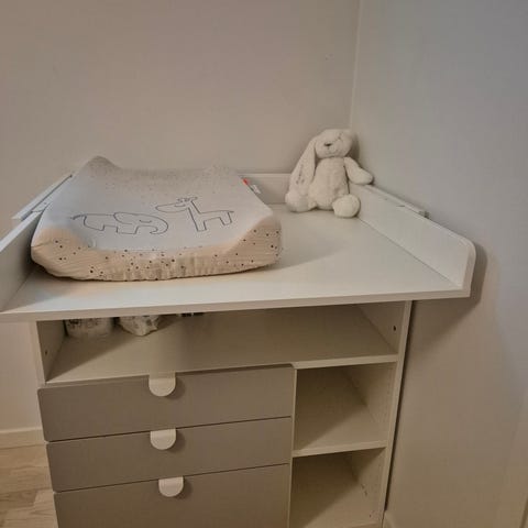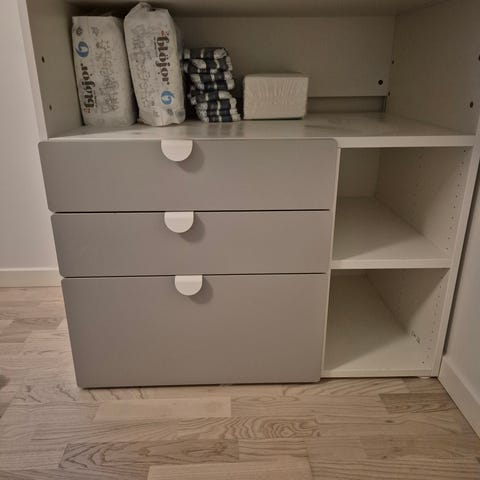 IKEA Småstad i vitt. Kan användas som sköt- eller skrivbord för barn och har praktiska förvaringslådor undertill. Sparsamt använd och därmed i fint skick.
