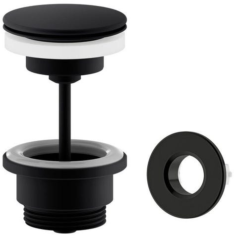 Arrow Popup Duo är en mattsvart bottenventil med två funktioner som passar handfat med både med eller utan breddavlopp. Popup-funktion tryck för stängning/öppning eller fast läge.