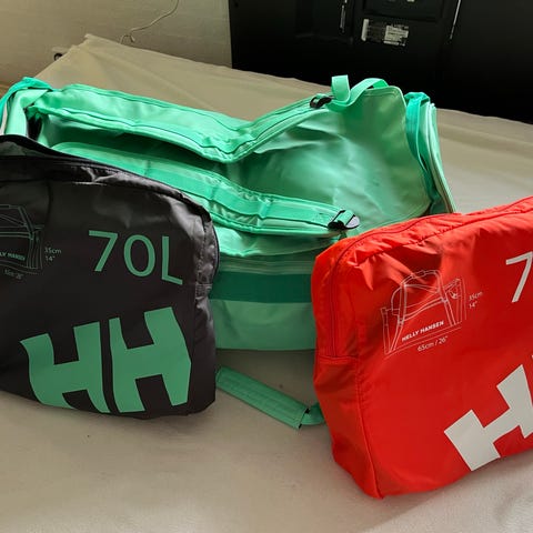 Helly Hansen duffelbag 90l rosa . Använt bara 1 gång och ingen skador eller märke på den. Som helt ny. 90l