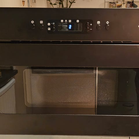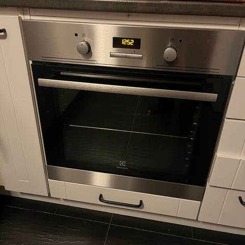 Electrolux är en inbyggd ugn med rostfri och svart och vit design. Ugnen har flera hyllplan. Den är avsedd för allmän användning i kök för matlagning och bakning.