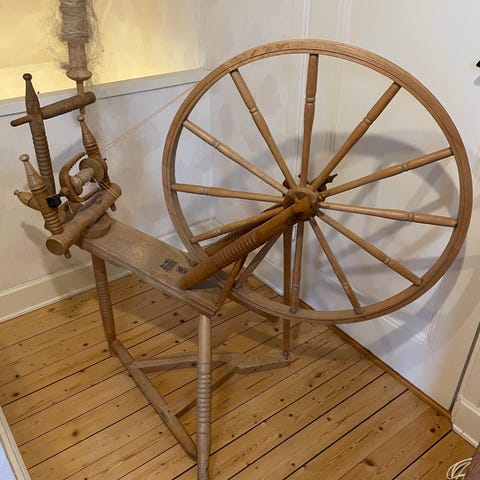 Trävävstol som är flitigt använd under 50 år och har gett många trasmattor.