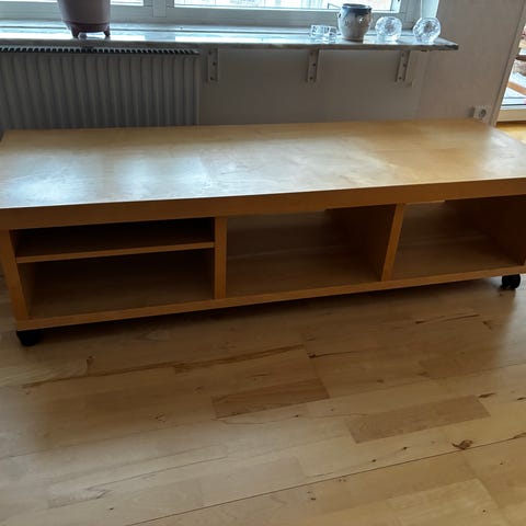 Hjälp oss bli av denna coola mediabänk med svarta metallbeslag på lådorna. Vi har inte plats. Gott skick med liten blekning av färgen på ovansidan. Snyggare än på bilderna. Bör ses. Tips kan ges om hur finishen förbättras.