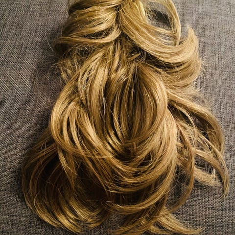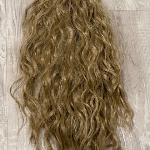 Hårförlängning löshår i blond färg, tillverkad av syntetiskt material. Produkten är för allmänt bruk och kan användas för att förlänga eller fylla ut hår. Levereras i förpackning med skötselråd.