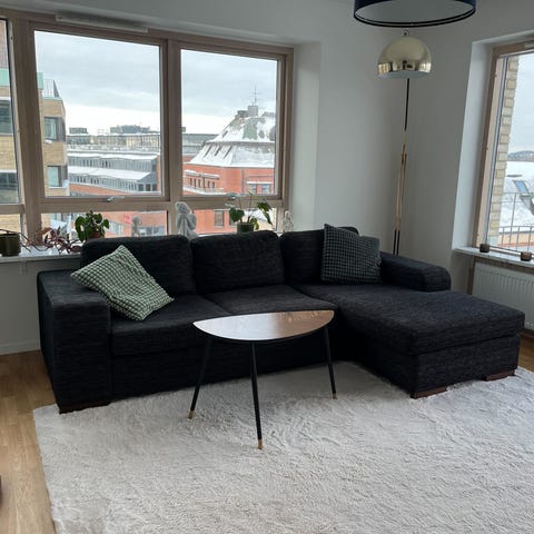 Soffa med schäslong.
