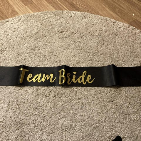 "Bride to Be" Sash (Axelband): Ett elegant svart band med vit text, perfekt för att markera den kommande bruden på hennes möhippa eller förberedelsedag.