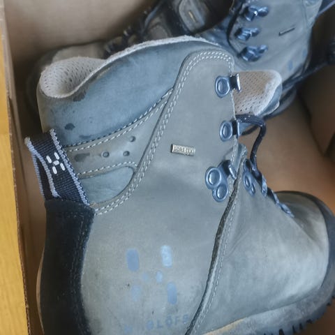 Haglöfs Gore-Tex vandringsskor i storlek 39 1/ 3 svart färg. Skorna är avsedda för vandring och har en robust sula för bättre grepp och stabilitet på olika underlag. Aldrig använda. Nypris 1700:-