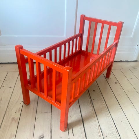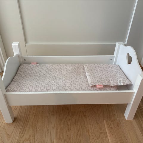 Fin vagga i trä gungar dockan till sömns.