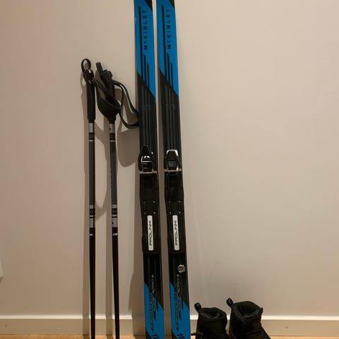 Atomic vallningsfria skidor (fiskfjäll) inkl pjäxor.