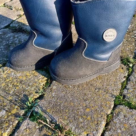 Kavat vinterstövlar i fint använt skick (gångveck, avskavd färg, lite smuts).