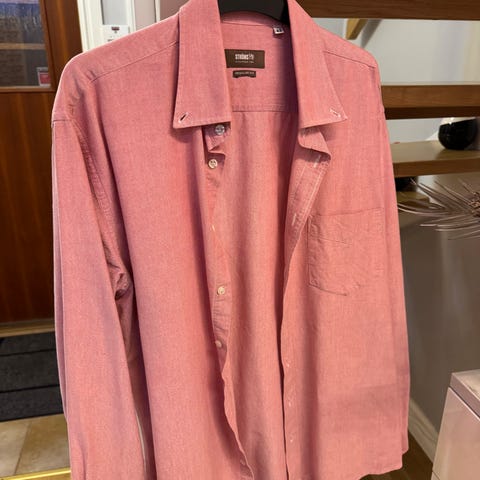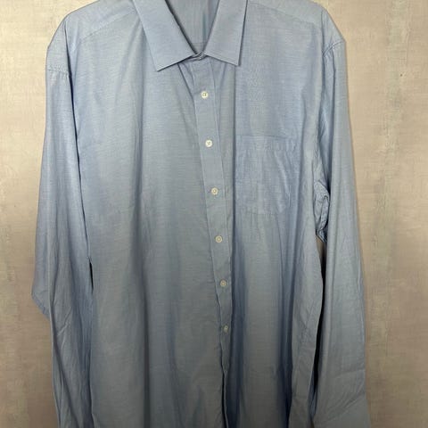 En ljusblå skjorta med knappar framtill och långa ärmar. Skjortan har en fin struktur och en klassisk krage.