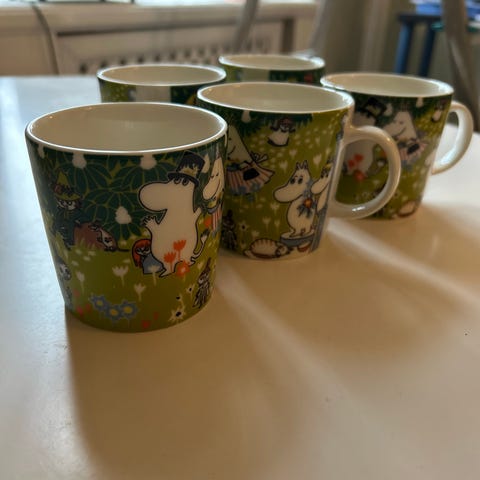 Arabia 6 Muminmuggar , 6 Muminskål och 6 tallrikar = servis på 18 st.