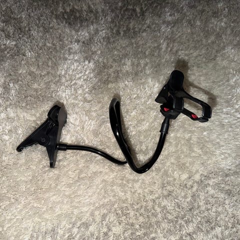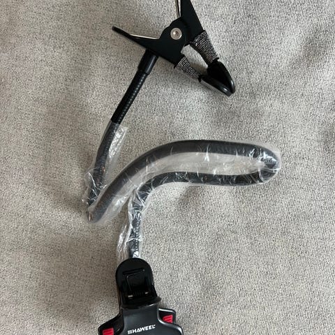 Praktisk mobilhållare med flexibel arm och stabil klämma. Den böjbara armen gör det lätt att justera mobilen till önskad vinkel. Passar de flesta smartphones och sitter stadig på plats.