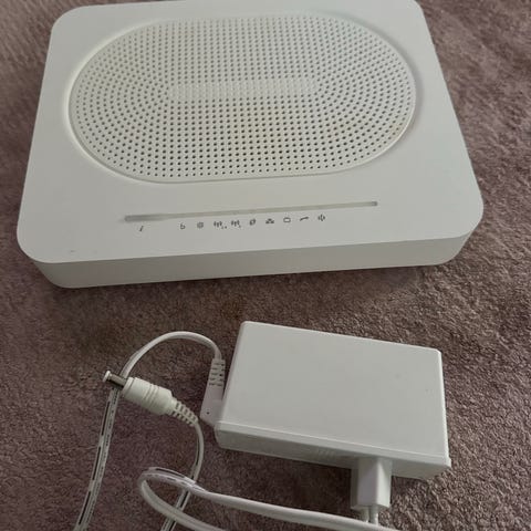 Telia Wifi-router Technicolor TG799vac med tillhörande nätverkskabel.