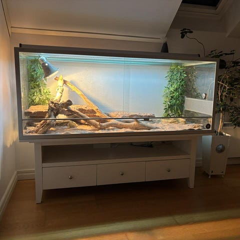 I priset i går allt som finns på bilder terrarium med tillbehör + byrån där terrarium stor idag.