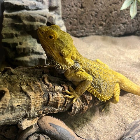 Ödlan är Skäggagam röd - Hypo, hona,8månader gammal.