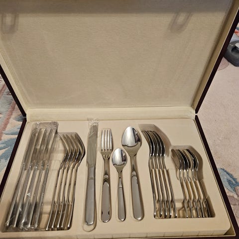 6 kuvert, 24delar, bestickset från Sola, Schweiz i originalförpackning.