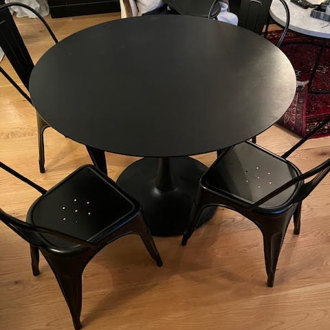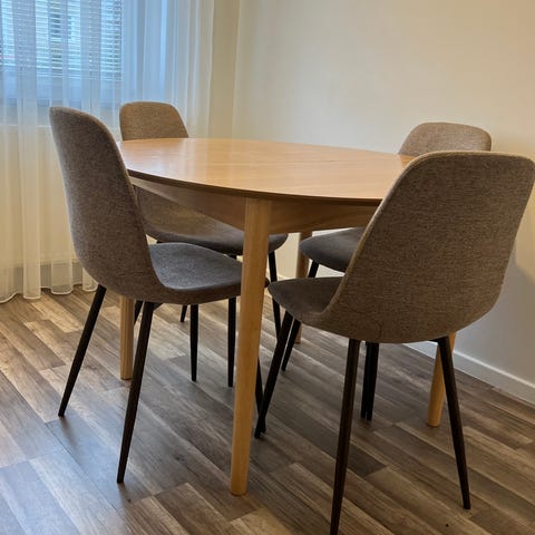 Matbord och stolar i nyskick! Köpt på Jysk för cirka en månad sedan. Säljs på grund av flytt. Finns i Halmstad Söndrum