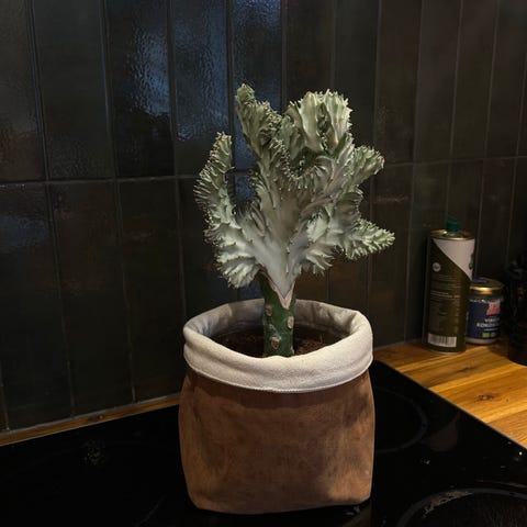 Epipremnum Pinnatum Cebu Blue på mossstöd. Hämtas i Stuvsta.
