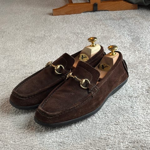 Modell som är svår att få tag på, en klassisk loafer men med fringes. Designades av Alessandro Michele.