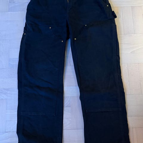 Carhartt jeans i blå denim, storlek W31 och M. Byxorna är tillverkade i slitstarkt denimmaterial och är avsedda för män. De har en klassisk passform och visar viss användning med mindre slitage och märken.
