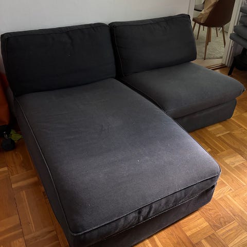 Soffa bortskänkes mot snabb avhämtning, först till kvarn. Soffan är från Ikea, den har fläckar som säkert försvinner efter en tvätt. Klädseln går att ta av på både soffa och kuddar. Finns i tallkrogen.