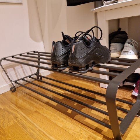 Kan användas som skohylla med sittbänk eller med skor på alla 3 hyllor.
