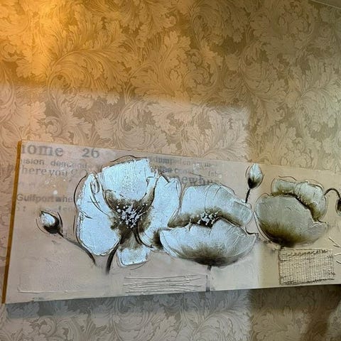 Väggdekoration i form av en tavla med motiv av en vas och kvistar. Tavlan har en ram i trä och en neutral färgskala med inslag av brunt och beige. Passar för inomhusbruk som väggprydnad.