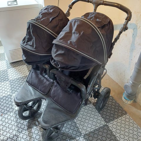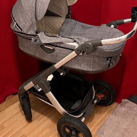 Mörkblått tyg använd med ett barn. Inköpt december 2022. Regnskydd följer med och mjuk vändbar dyna från Elodie details. Hämtas i Falun. Sittvagn.