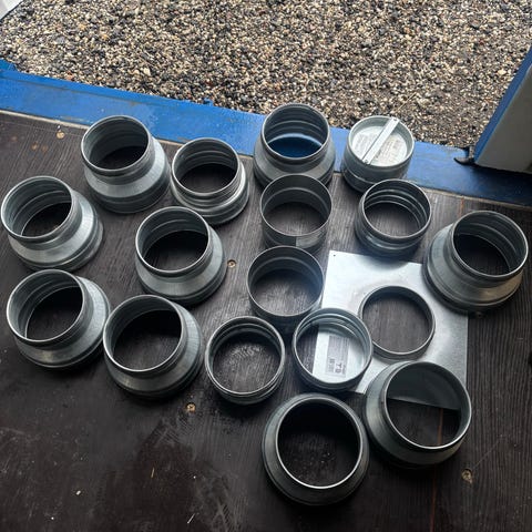 Låda med diverse rördelar för ventilation