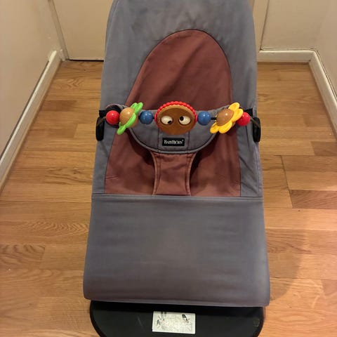 Grå babybjörn babysitter. Avtagbart tyg som kan tvättas (ej tvättad på bilder). Kan hämtas på Kungsholmen.