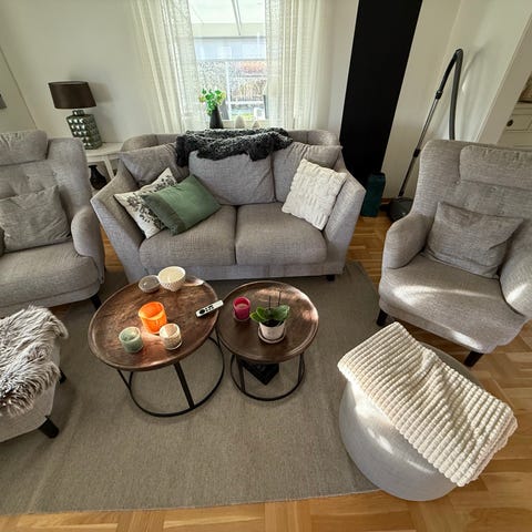 Säljer flera soffor, fåtölj och barstolar i nyskick. Klädsel är lätt att rengöra och enkel i underhåll. Möblerna är lätta i vikt och smidiga att flytta. Passar utmärkt för att ta emot kunder, till exempel i kontor, skönhetssalong, studio, reception eller väntrum. Praktiska möbler med ett prydligt och representativt utseende.