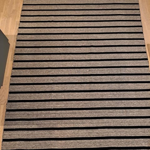 Slätvävd ullmatta i blått använd men i bra skick. 220x280 cm. Hämtas.
