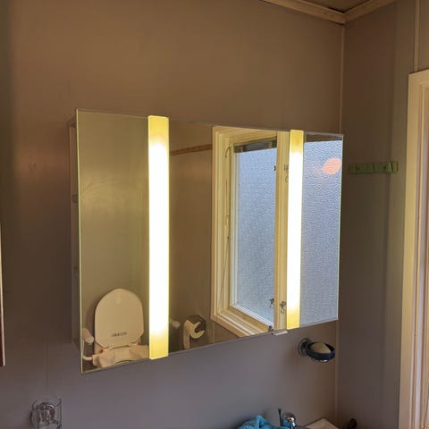 SVEDBERGS Högskåp (H172× B40,×D35) och mindre väggskåp(H70xB30xD15) samt spegel(H84 ink lampa, B60)