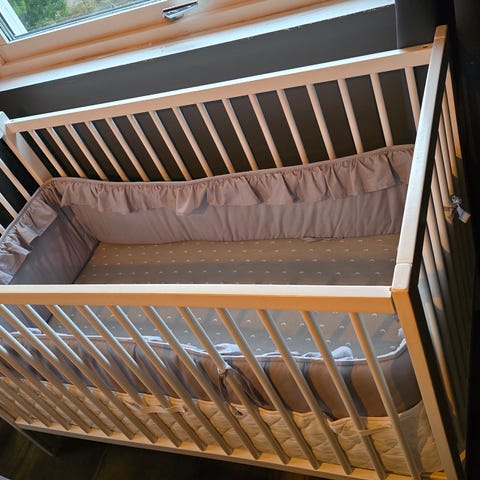 Spjälsäng från Kaxholemen säljes , botten går att reglera i två lägen. Höj och sänkbar långsida.