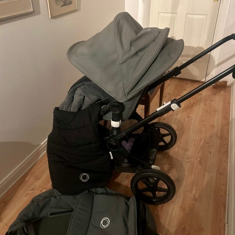 Vagnen säljes i använt men fint skick. Reflextejpen går att ta av. Handtaget är skavt men går att ersätta med nya. Suffletten är något solblekt men det är oundvikligt i det svarta tyget.