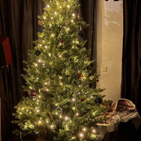 Har en julgran från Plantagen, modell Hurdal 180cm. Använd tre år, nu är det dags för riktig gran igen.
