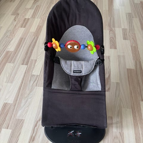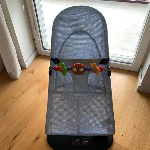Tyget har lite skav och är väl använt, men allt är fullt fungerande. Lekbågen är i fint skick.