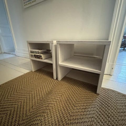 Sängbord i ljust trä. Gott skick då de endast varit upphängda kortare period.