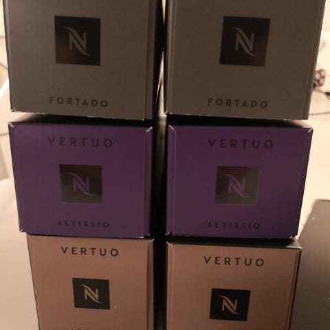 Nespresso Vertuo kapslar kaffe i 5-pack med olika smaker. Förpackningarna är färgkodade för att indikera olika kaffesorter. Passar till Nespresso Vertuo kaffemaskiner. Helt nya och oöppnade!