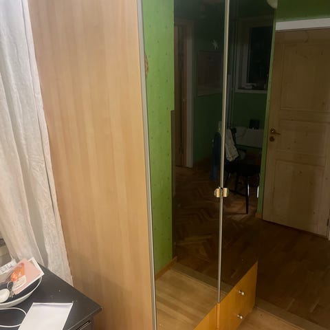 2 st Ikea garderober med spegel. Ena har klädstång + hylla + lådor, andra har hyllor + lådor